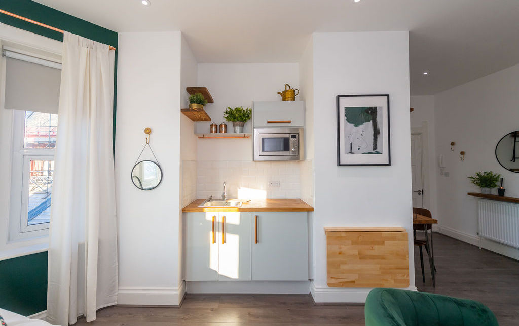 A building of just 14 thoughtfully designed studio apartments with hotel-style services and make your friends envious type of amenities, including an outdoor terrace, yoga studio, chefs kitchen, gym space with Peloton studio, cinema room ... and of course your own do not disturb sign ...
